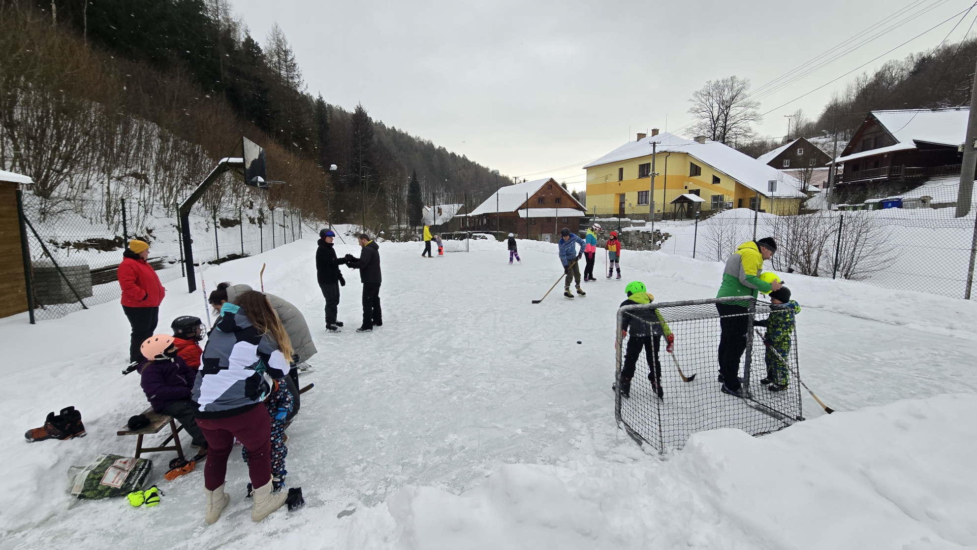 Kluziště mohou využívat hosté z naší chaty, brusle a hokejky je třeba si vzít vlastní. Branky jsou k dispozici.